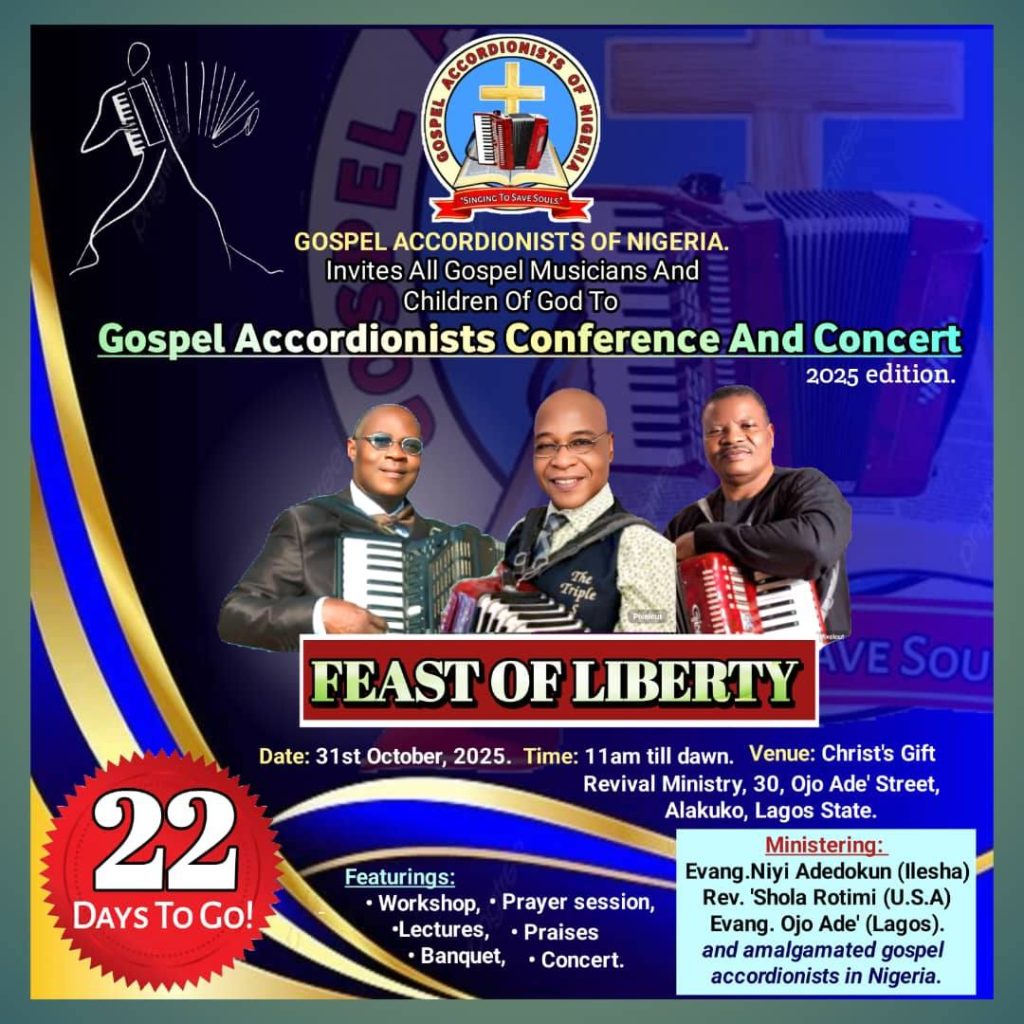 This year, the accordionists would be gathering in their hundreds to share knowledge, learn and celebrate one another in what they tag Feast of Liberty featuring Accordionists’ Conference and Concerts, simplified as teaching, prayers and singinspiration.
